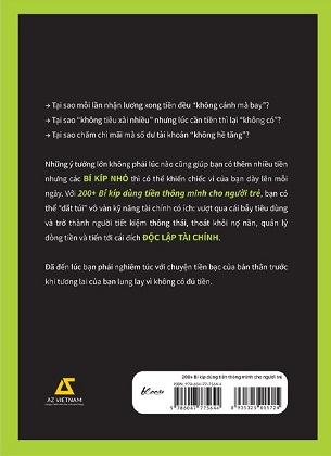 Những ý tưởng lớn không phải lúc nào cũng giúp bạn có thêm nhiều tiền nhưng các BÍ KÍP NHỎ thì có thể khiến chiếc ví của bạn dày lênmỗi ngày. Với 200+ Bí kíp dùng tiền thông minh dành cho người trẻ, bạn có thể “dắt túi” vô vàn kỹ năng tài chính có ích: vượt qua cái bẫy tiêu dùng và trở thành người tiết kiệm thông thái;, thoát khỏi nợ nần, quản lý dòng tiền và tiến tới cái đích ĐỘC LẬP TÀI CHÍNH.