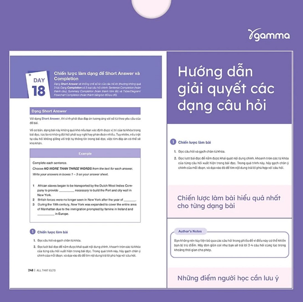 All That IELTS -Trợ Thủ Giúp Giảm Nỗi Lo Trong Phòng Thi đưa ra những phân tích tổng quan về bài thi và các dạng câu hỏi thường gặp, giới thiệu các chiến lược làm bài thực tiễn, các cấu trúc và từ vựng thường gặp. Với các câu trả lời mẫu và mẹo hữu ích khi làm bài, cuốn sách giúp người học cảm thấy tự tin hơn khi bước vào phòng thi. Những bí kíp này không chỉ giúp giảm căng thẳng mà còn là "cứu cánh" cho người học khi gặp khó hoặc bị áp lực thời gian trong quá trình làm bài.