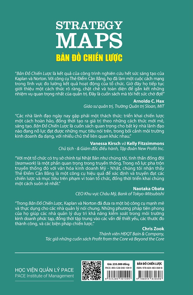 “Các nhà lãnh đạo ngày nay gặp phải một thách thức: triển khai chiến lược một cách hoàn hảo, đồng thời tạo ra giá trị theo những cách thức mới mẻ, sáng tạo. “Bản Đồ Chiến Lược” là cuốn sách quan trọng cho bất kỳ nhà lãnh đạo nào đang nỗ lực đạt được những mục tiêu nói trên, trong bối cảnh môi trường kinh doanh đa dạng, với nhiều chủ thể liên quan khác nhau.”