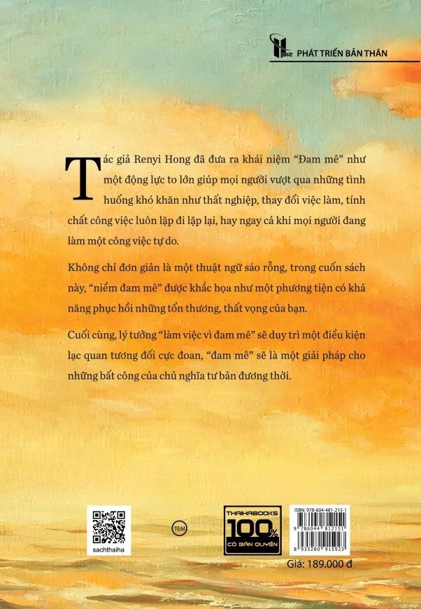 Tác giả Renyi Hong đã đưa ra khái niệm “Đam mê” như một động lực to lớn giúp mọi người vượt qua những tình huống khó khăn như thất nghiệp, thay đổi việc làm, tính chất công việc luôn lặp đi lặp lại, hay ngay cả khi mọi người đang làm một công việc tự do.