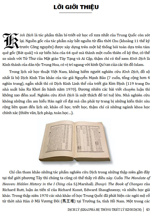 Trong lịch sử học thuật Việt Nam, không hiếm người nghiên cứu Kinh Dịch, đồ sộ nhất là bộ Dịch Kinh Tân khảo của tác giả Nguyễn Mạnh Bảo (7 cuốn, tổng cộng hơn 4 nghìn trang), ngắn nhất thì có Dịch Kinh Linh thể của triết gia Kim Định (119 trang do nhà xuất bản Ra Khơi ấn hành năm 1970). Đương nhiên các bài viết chuyên luận thì không sao đếm xuể. Nghiên cứu Kinh Dịch là một thách đố trí tuệ lớn. Nhà nghiên cứu không những cần am hiểu Hán ngữ cổ đại mà cần phải tự trang bị những kiến thức sâu rộng liên quan đến lịch sử, khảo cổ học, triết học, thậm chí cả những ngành khoa học chính xác (thiên văn, lịch pháp, toán học…).