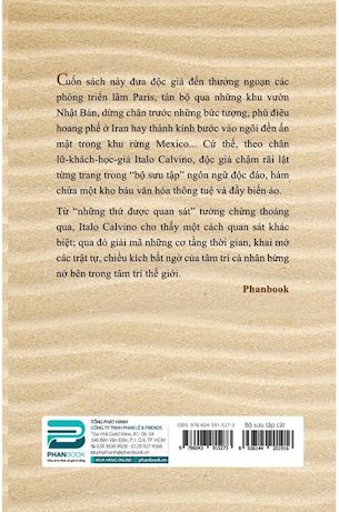 Từ "những thứ được quan sát" tưởng chừng thoáng qua, Italo Calvino cho thấy một cách quan sát khác biệt; qua đó giải mã những cơ tầng thời gian, khia mở các trật tự, chiều kích bất ngờ của tâm trí cá nhân bừng nở bên trong tâm trí thế giới.