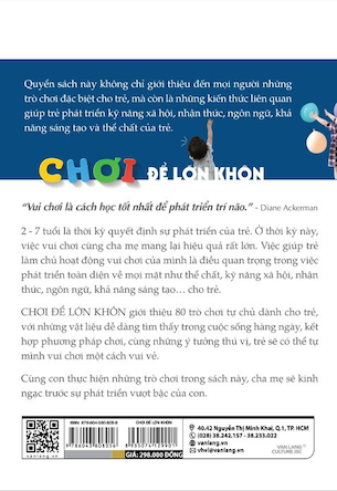 CHƠI ĐỂ LỚN KHÔN giới thiệu 80 trò chơi tự chủ dành cho trẻ, với những vật liệu dễ dàng tìm thấy trong cuộc sống hàng ngày, kết hợp phương pháp chơi, cùng những ý tưởng thú vị, trẻ sẽ có thể tự mình vui chơi một cách vui vẻ.