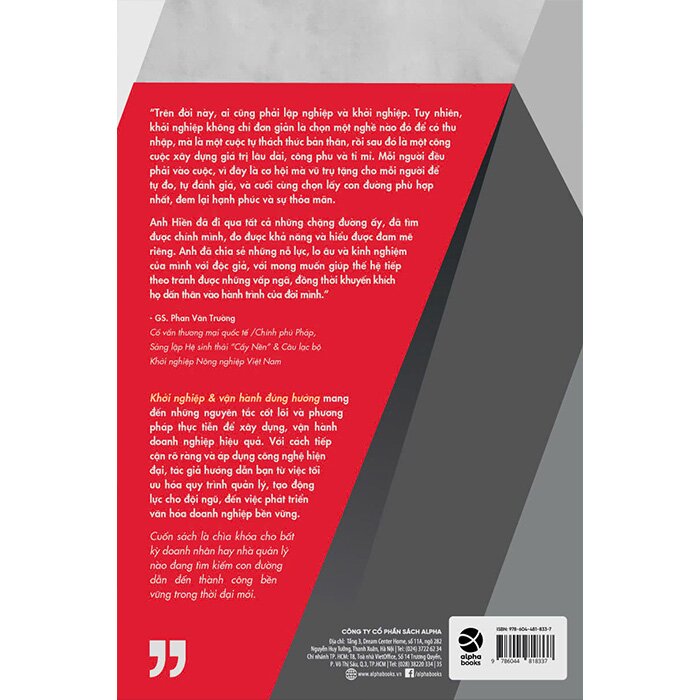 Với cách trình bày logic, rõ ràng và những bài học thực tiễn, cuốn sách này sẽ là hành trang không thể thiếu cho bất kỳ ai đang hoặc chuẩn bị bước vào con đường khởi nghiệp.