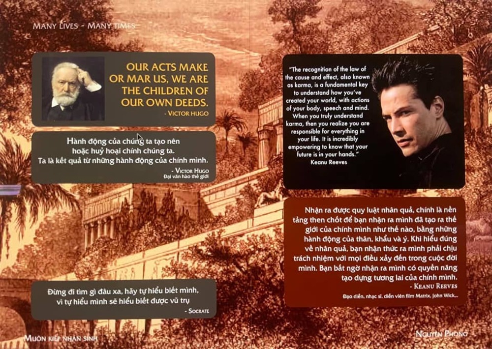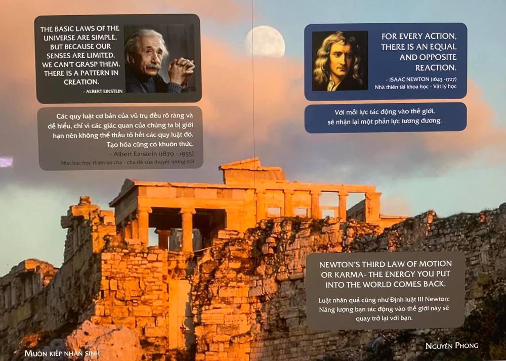 - Con người không phải chỉ là cái thân xác vật chất mà bên trong còn có những nguồn năng lượng vô hình luôn biến chuyển, tác động qua lại từng giờ từng phút, dưới ảnh hưởng của các luật vũ trụ, như luật Nhân quả và Luân hồi.