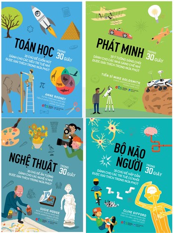 Nghệ thuật trong 30 giây (Susie Hodge): Con người đã sáng tạo nghệ thuật trong suốt hàng nghìn năm. Họ điêu khắc, vẽ, in, tạo ra những tác phẩm từ nhỏ xíu đến đồ sộ, khổng lồ. Cuốn sách khám phá câu chuyện thú vị của nghệ thuật, từ sơ khai đến hiện đại. Mỗi chương sẽ đề cập đến một thể loại nghệ thuật khác nhau, được sáng tạo ở những thời kỳ khác nhau dưới bàn tay rất nhiều nghệ sĩ.