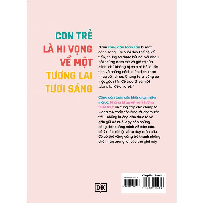 Khái niệm “công dân toàn cầu” giờ đây sẽ không còn quá chung chung và mơ hồ nữa. Với cuốn sách này, các bậc cha mẹ, thầy cô và người chăm sóc trẻ sẽ có một hình dung đầy đủ hơn về những phẩm chất cần có của một công dân toàn cầu cũng như những điều họ nên làm và có thể làm để giúp trẻ có được các phẩm chất ấy.