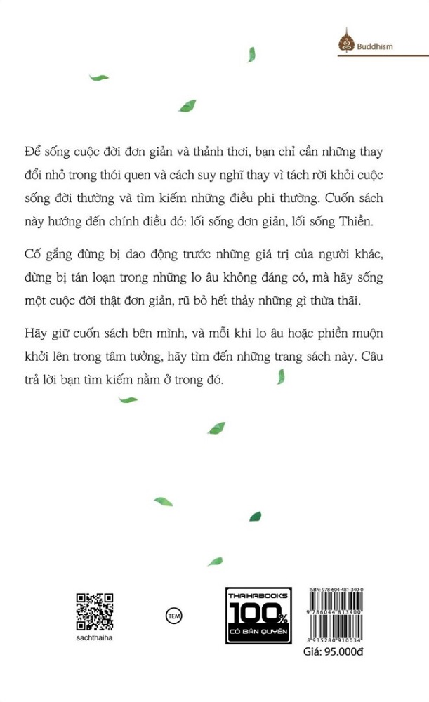 Cố gắng đừng bị dao động trước những giá trị của người khác, đừng bị tán loạn trong những lo âu không đáng có, mà hãy sống một cuộc đời thật đơn giản, rũ bỏ hết thảy những gì thừa thãi. Đó chính là “lối sống Thiền”.