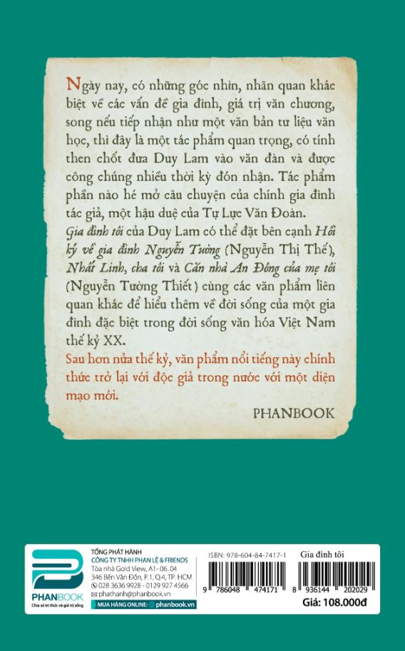 Gia đình tôi của Duy Lam có thể đặt cạnh Hồi ký về gia đình Nguyễn Tường (Nguyễn Thị Thế), Nhất Linh, cha tôi và Căn nhà An Đông của mẹ tôi (Nguyễn Tường Thiết) cùng các tác phẩm liên quan khác để hiểu thêm về đời sống của một gia đình đặc biệt trong đời sống văn hóa Việt Nam thế kỷ XX.