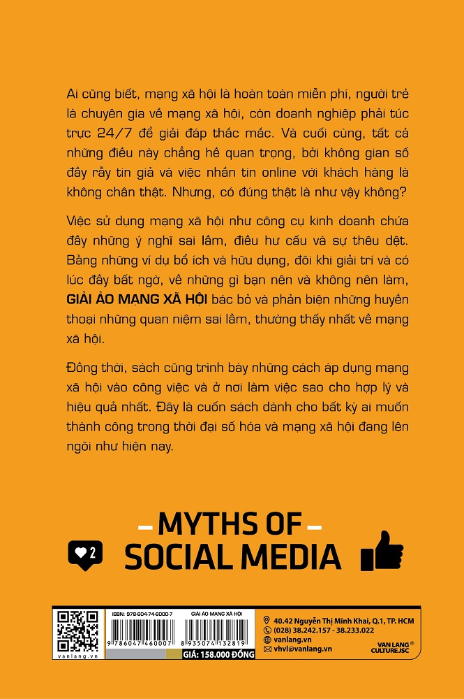 Việc sử dụng mạng xã hội như công cụ kinh doanh chứa đầy những ý nghĩ sai lầm, điều hư cấu và sự thêu dệt. Bằng những ví dụ bổ ích và hữu dụng, đôi khi giải trí và có lúc đầy bất ngờ, về những gì bạn nên và không nên làm, GIẢI ẢO MẠNG XÃ HỘI bác bỏ và phản biện những huyền thoại những quan niệm sai lầm, thường thấy nhất về mạng xã hội.