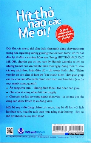 Đôi khi, các mẹ có thể cảm thấy như mình đang chạy nước rút trong đời, ngả lưng xuống giường vào tối hôm trước, để rồi bắt đầu lại từ đầu vào sáng hôm sau. Trong HÍT THỞ NÀO CÁC MẸ ƠI, chuyên gia trị liệu tâm lý Shonda Moralis sẽ chỉ ra những lợi ích của việc hành thiền mỗi ngày, đồng thời chỉ cho các mẹ cách thực hiện điều đó – chỉ trong NĂM phút. Thêm vào đó, cô còn chia sẻ hơn 60 bài chánh niệm đơn giản giúp các mẹ chú tâm đến hạnh phúc toàn diện của bản thân (và của mọi người xung quanh):