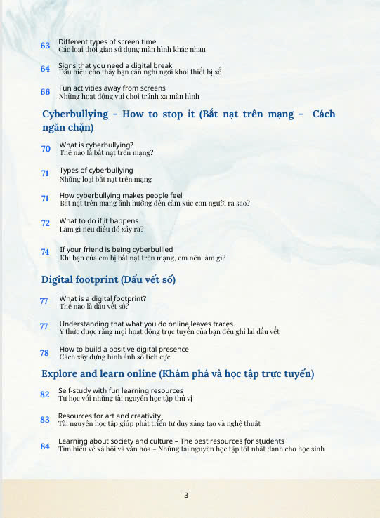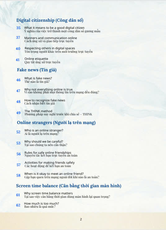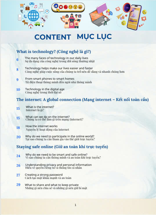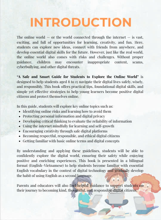“A Safe and Smart Guide for Students to Explore the Online World” là cuốn sách song ngữ (Anh – Việt) dành cho học sinh từ 8 đến 15 tuổi, giúp các em: