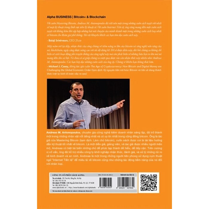 Cuốn sách là tập hợp các bài nói chuyện của Andreas M. Antonopoulos, một trong những chuyên gia hàng đầu thế giới về blockchain và bitcoin. Những bài nói chuyện của ông đã góp phần giúp cho một lĩnh vực vẫn còn mới mẻ, lạ lẫm và phức tạp như blockchain và bitcoin trở nên dễ hiểu và gần gũi hơn. Trong cuốn sách này, tác giả sẽ lý giải tại sao bitcoin lại là một bước đột phá về công nghệ và tài chính với những tiềm năng vượt ra ngoài tên gọi “tiền kỹ thuật số” của nó hiện nay.