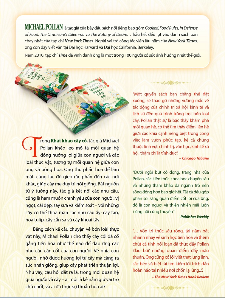 “Dưới ngòi bút cô đọng, trang nhã của Pollan, các kiến thức khoa học chuyên sâu và những tham khảo đa ngành trở nên sống động hơn bao giờ hết. Tất cả đều góp phần soi sáng quan điểm cốt lõi của ông, đó là con người và thiên nhiên mãi luôn ‘cùng hội cùng thuyền’”.