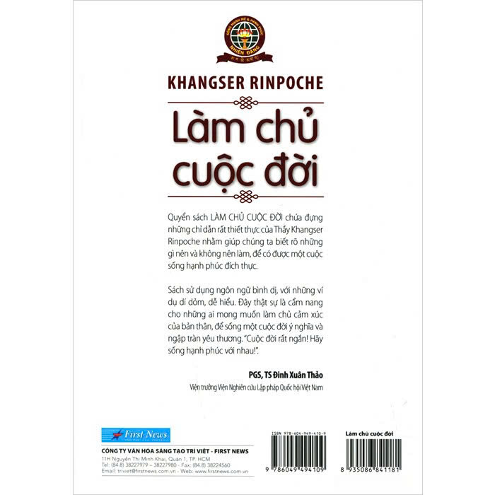 Cuốn sách “Làm chủ cuộc đời” tập hợp những bài giảng của tiến sỹ Phật học Khangser Rinpoche, giảng sư giảng dạy triết lý Phật học cho hàng trăm Tỳ Kheo và Sa Di ở Tu Viện Phật Giáo Đại Thừa Sera Jey, miền Nam Ấn Độ.