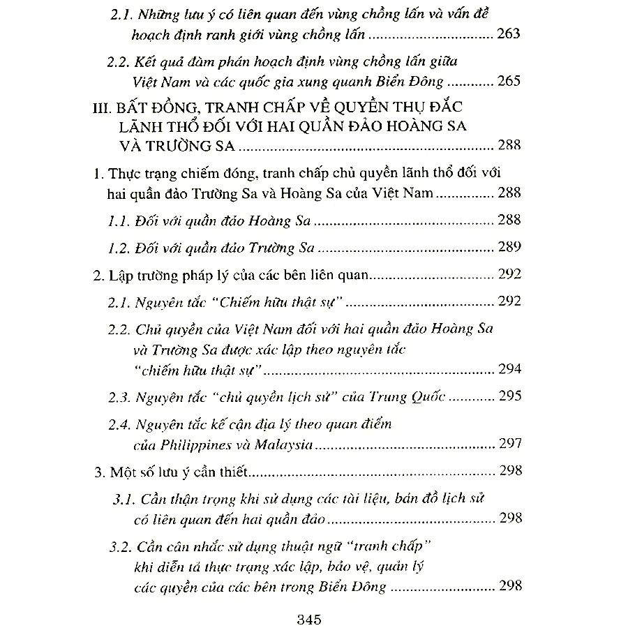 Đặc biệt, trong cuốn sách này Tiến sĩ Trần Công Trục đã trình bày một cách hệ thống, khái quát và khoa học các hệ quy chiếu pháp lý khác nhau để giải quyết các tranh chấp khác nhau liên quan đến biên giới, lãnh thổ, phân định biển, áp dụng và giải thích Công ước Liên hợp quốc 1982 về Luật Biển (UNCLOS).
