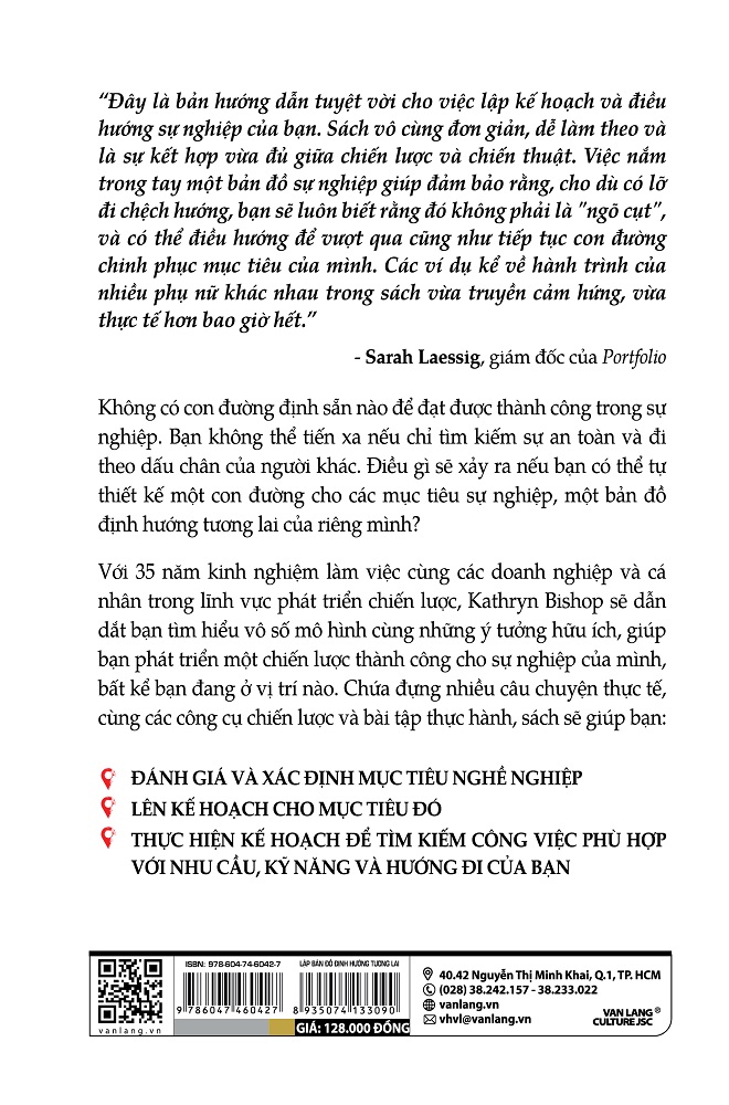 Việc nắm trong tay một bản đồ sự nghiệp giúp đảm bảo rằng, cho dù có lỡ đi chệch hướng, bạn sẽ luôn biết rằng đó không phải là "ngõ cụt", và có thể điều hướng để vượt qua cũng như tiếp tục con đường chinh phục mục tiêu của mình. Các ví dụ kể về hành trình của nhiều phụ nữ khác nhau trong sách vừa truyền cảm hứng, vừa thực tế hơn bao giờ hết.”