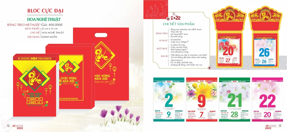 Lịch Bloc Tường: Hoa Nghệ Thuật (Bảng treo Metalize)