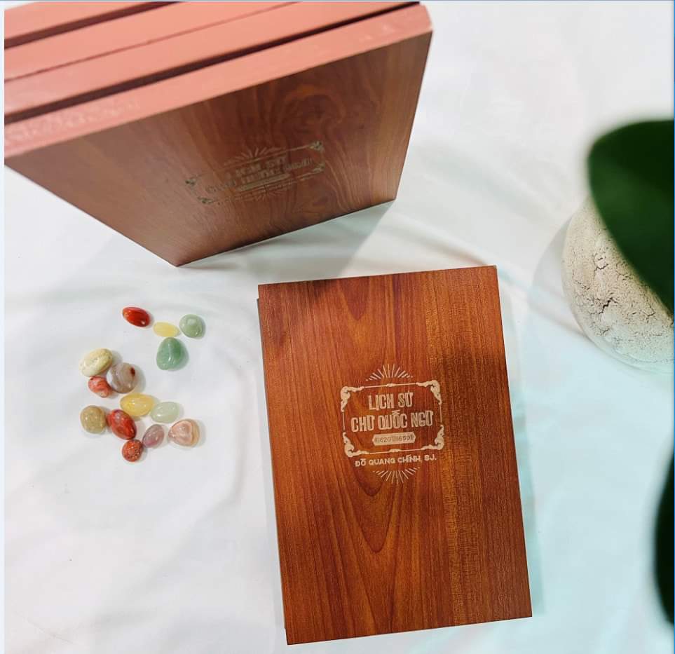 – Bìa sách được làm trên chất liệu gỗ và thiết kế như một chiếc hộp đựng trang trọng để tôn vinh những giá trị mà cuốn sách mang lại cũng như tôn vinh tiếng Việt
