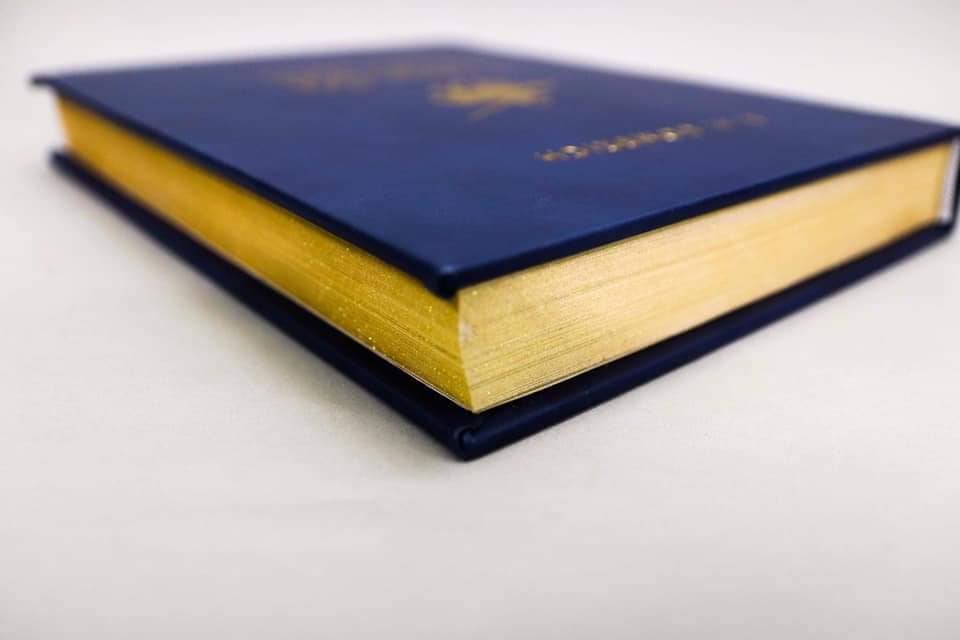 Hình thức: bìa da PU, in màu, nhũ vàng