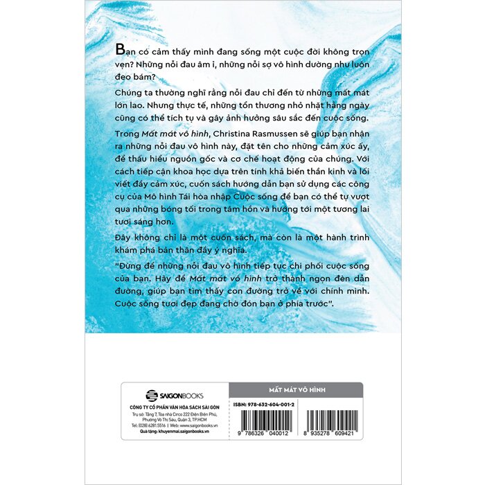 Trong cuốn sách Mất mát vô hình, tác giả Christina Rasmussen đã chỉ ra rằng những tổn thương âm thầm này có thể ảnh hưởng sâu sắc đến cuộc sống của chúng ta như thế nào. Cuốn sách không chỉ giúp độc giả nhận diện những mất mát vô hình mà mình đã trải qua, mà còn cung cấp các công cụ để chữa lành và tìm lại chính mình.