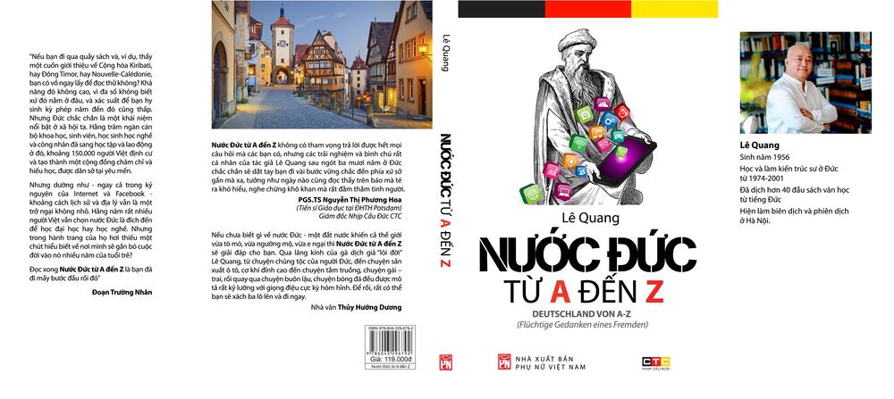 Nước Đức từ A đến Z là nhan đề cuốn tản văn mang màu sắc tự sự dài 260 trang của tác giả Lê Quang do Nhà xuất bản Phụ Nữ Việt Nam ấn hành sẽ được chính thức ra mắt trong tháng 7/2021. 29 chủ đề được đề cập trong cuốn sách dựa trên 29 chữ trong bảng chữ cái tiếng Đức.