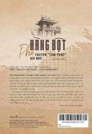 ... Tác giả Hồ Công Thiết gắn bó suốt từ tuổi thơ với Hàng Bột, yêu con phố ấy đến mê man từng nóc nhà, từng ngõ hẻm để viết nên tập sách này. Anh hiểu về Hà Nội rất chi tiết, kỹ càng, và viết ra cũng chi tiết, kỹ càng, cuốn hút, ăm ắp những điều ai cũng yêu thích, cũng tò mò mà chưa mấy người viết ra…"