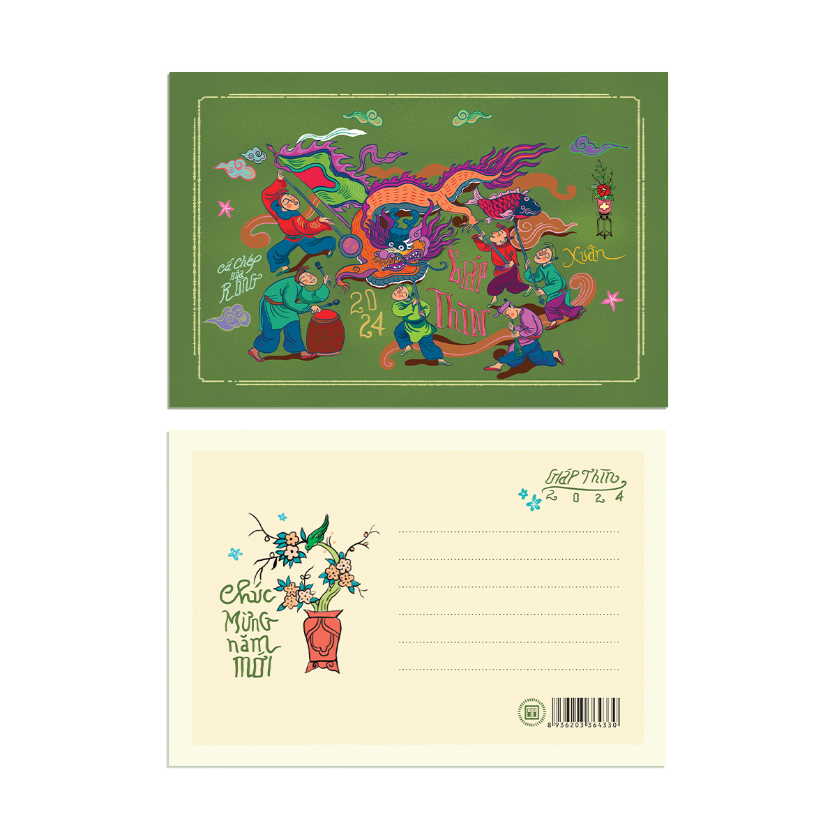 Sách Tết Giáp Thìn 2024 được in màu bằng công nghệ mực vi sinh, trên giấy Ford 120 gsm, có thiết kế đồng bộ với các cuốn Sách Tết đã xuất bản. Mỗi cuốn đều được đánh số thứ tự riêng và tặng kèm postcard thiết kế đồng bộ.