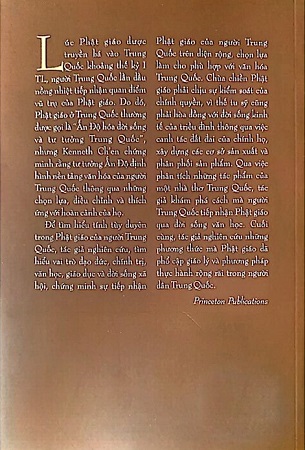 "Lúc Phật giáo được truyền bá vào Trung Quốc khoảng thế kỷ I TL, người Trung Quốc lần đầu nồng nhiệt tiếp nhận quan điểm vũ trụ của Phật Giáo. Do đó, Phật giáo ở Trung Quốc thường được gọi là "Ấn Độ hóa đời sống và tư tưởng của Trung Quốc" nhưg Kenneth Ch'en chứng minh rằng tư tưởng Ấn độ định hình nền tảng tư tưởng văn hóa của người Trung Quốc thông qua những chọn lựa, điều chỉnh và thích ứng với hoàn cảnh của họ. Để tìm hiểu tính tùy duyên trong Phật giáo của người Trung Quốc, tác giả đã nghiên cứu, tìm hiểu vai trò của đạo đức, chính trị, văn học, giáo dục và đời sống xã hội, chứng minh sự tiếp nhận.