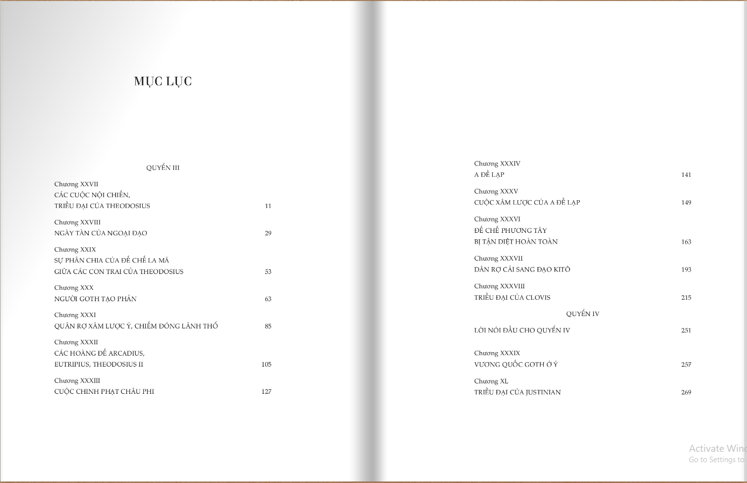 Tổng số tập sách: Được chia thành 3 tập: Tập 1 bao gồm quyển I-II (712 trang); tập 2 bao gồm quyển III-IV (480 trang); tập 3 bao gồm quyển V-VI (560 trang).