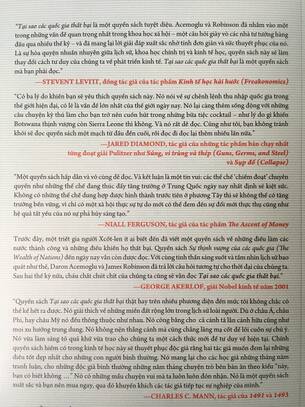 Tập sách là công trình nghiên cứu trong 15 năm của hai nhà kinh tế học xuất sắc và uyên bác. Ấn bản tại VN do Nguyễn Thị Kim Chi dịch cùng sự hợp tác của Hoàng Thạch Quân và Hoàng Ngọc Lan, Vũ Thành Tự Anh hiệu đính. Tựu trung, điều cuốn sách muốn nhắm đến là những thể chế nào có những điều chỉnh, cải cách để dung hợp được các lợi ích kinh tế - chính trị và tạo điều kiện cho người dân làm ăn sinh sống được tốt nhất sẽ thành công. Như sách đã chỉ ra, ngay như Trung Quốc khi họ giải quyết được phần nào đó sự dung hợp này, họ đã có sự tăng trưởng thần kỳ. Và giờ đây họ vẫn tiếp tục giải quyết bài toán hể chế dung hợp của họ.