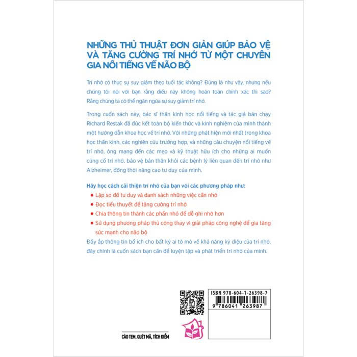 “Tăng cường trí nhớ phòng bệnh Alzheimer” của Tiến sĩ Y khoa Richard Restak là một tác phẩm toàn diện, khám phá cách trí nhớ hoạt động và cách tối ưu hóa khả năng ghi nhớ. Với nhiều năm kinh nghiệm trong ngành thần kinh học, Restak đã tập hợp các nghiên cứu khoa học, những ví dụ điển hình và kiến thức thực tiễn để xây dựng một bộ phương pháp giúp người đọc hiểu rõ và cải thiện trí nhớ của mình.