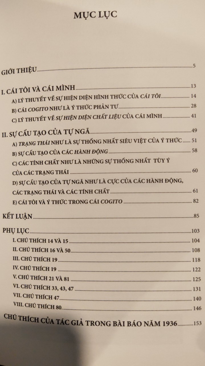 Tính Siêu Việt Của Tự Ngã - Jean Paul SartreSách được viết vào năm 1934 và công bố lần đầu vào năm 1936, là thành quả đầu tay của Jean-Paul Sartre sau quá trình nghiên cứu hiện tượng học Husserl tại Đức. Trong đó, ông không những đã kế thừa xuất sắc các lập trường hiện tượng học được Husserl khai triển trong hai tác phẩm nền tảng là Ý niệm dẫn đạo cho một môn hiện tượng học và Các nghiên cứu logic học, mà còn phê phán lý thuyết của Husserl về cái Tôi siêu nghiệm, rồi triển khai quan niệm của chính ông về Tự ngã.