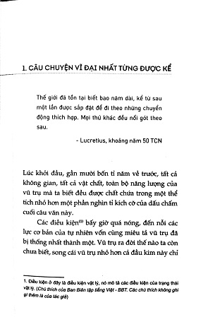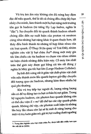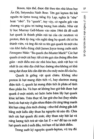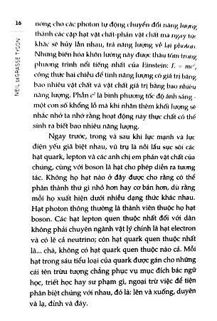 Một tác phẩm thông minh dí dỏm và dễ đọc, có thể cuốn hút cả những người bận rộn nhất, giúp họ chỉ tranh thủ những phút rảnh rỗi mà có được lượng kiến thức khổng lồ, thú vị về thế giới vật lý thiên văn: từ Big Bang cho đến vật chất tối, năng lượng tối; từ hệ mặt trời tới những khám phá không gian liên hành tinh; từ lý thuyết nền tảng của Einstein tới những kịch bản về tương lai vũ trụ…