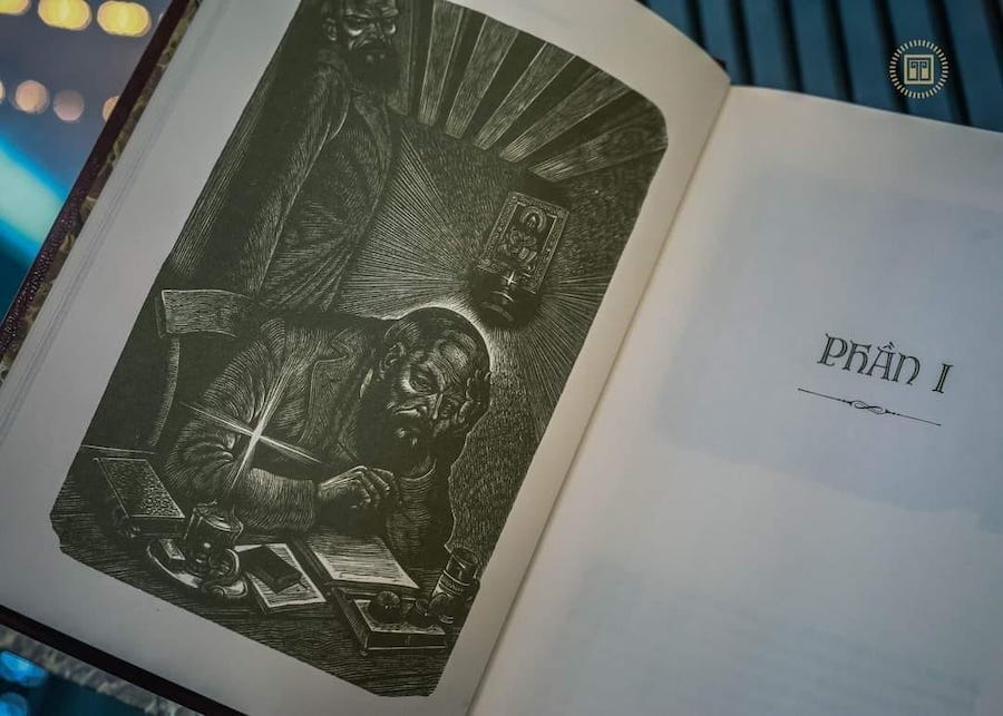 - 450 cuốn đánh số từ CN 366 đến CN 815 có bìa bọc bằng da PU. Tên sách và một số họa tiết ép nhũ 2 màu: đen và vàng. Hộp đựng bằng carton có hoa văn trang trí in thủy ấn. Giá phát hành: 1.500.000đ.