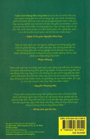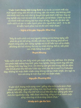 Đọc cuốn sách này và gấp nó lại, bạn sẽ không còn nghĩ ông Fukuoka đã viết những gì, nhưng bạn sẽ nhận ra vô số những điều mà trước đây do những tri thức học ở sách vở, trong trường lớp đã biến thành định kiến trong đầu bạn khiến cho bạn không nhận ra. Bạn sẽ nhìn cái cây không phải là giống thực vật vô tri được mô tả trong sách trồng trọt mà là cái cây có tâm hồn. Bạn sẽ thú vị nhớ lại, trong câu chuyện cổ tích Một người mẹ, nhà văn Andersen đã từng bảo mỗi một cái cây đều có một số phận, mỗi cái cây đều có một trái tim. Và bạn sẽ hiểu vì sao ông Fukuoka lại nói chỉ có những đứa trẻ mới nhìn được thiên nhiên như thiên nhiên vốn có.
