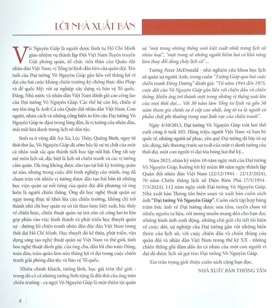 Đại Tướng Võ Nguyên Giáp - General Vo Nguyen Giap (Sách Ảnh) (Bìa Cứng) - Thông Tấn Xã Việt Nam