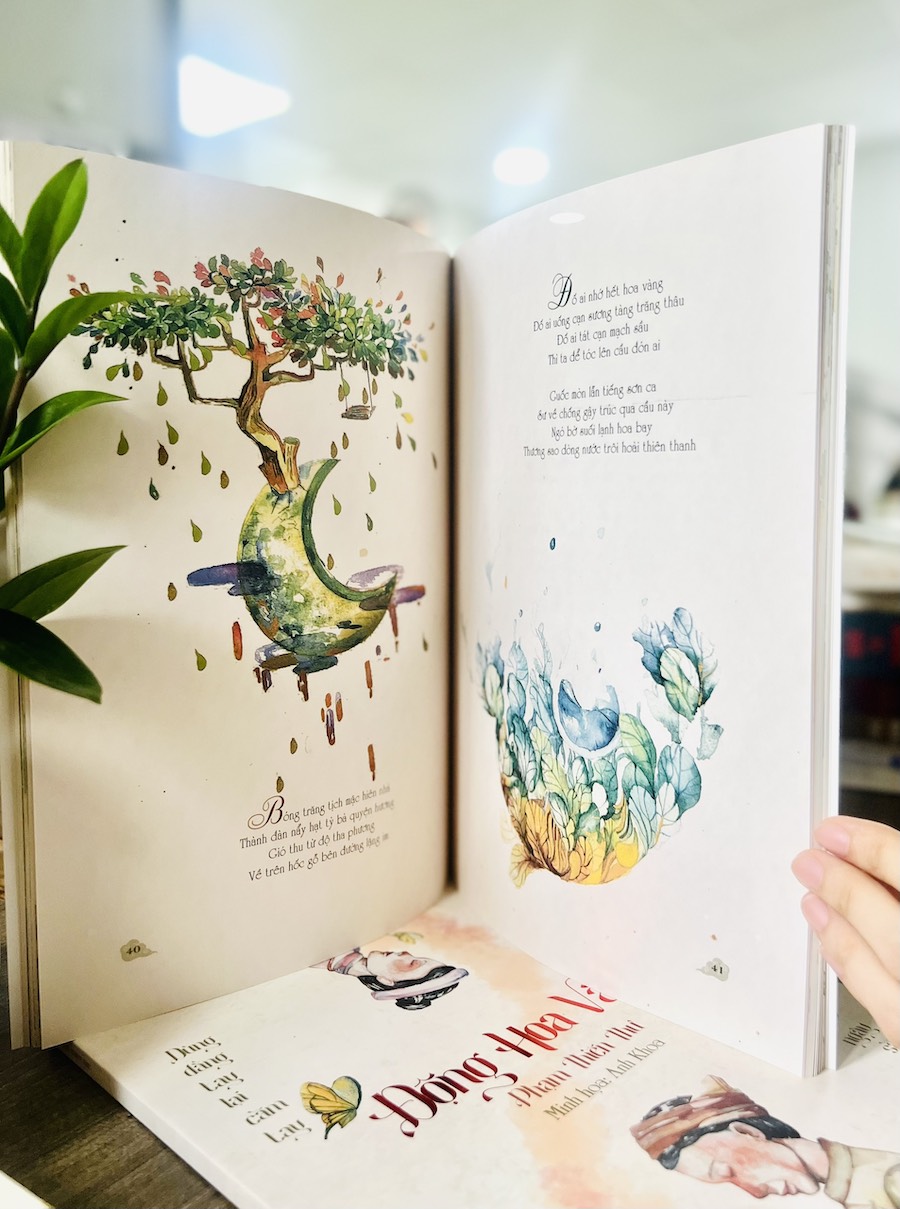 Động hoa vàng là tiếng thơ thoát tục, là chuyến rong chơi giữa dòng đời, đi qua mọi thăng trầm, để rồi cuối cùng, con người buông bỏ mọi dính mắc, tìm thấy chính mình trong một giấc ngủ thảnh thơi. Qua bài thơ vừa đúng một trăm khổ, mỗi khổ thơ bốn câu theo lối lục bát, tác giả đã tạo nên một Động hoa vàng vừa thơ mộng vừa hàm chứa triết lý Phật giáo. Đó cũng là khởi nguồn để gợi nên cảm hứng cho họa sĩ trẻ Anh Khoa vẽ nên những bức tranh giàu cảm xúc, quyện giữa thực và mộng, giữa đạo và đời.