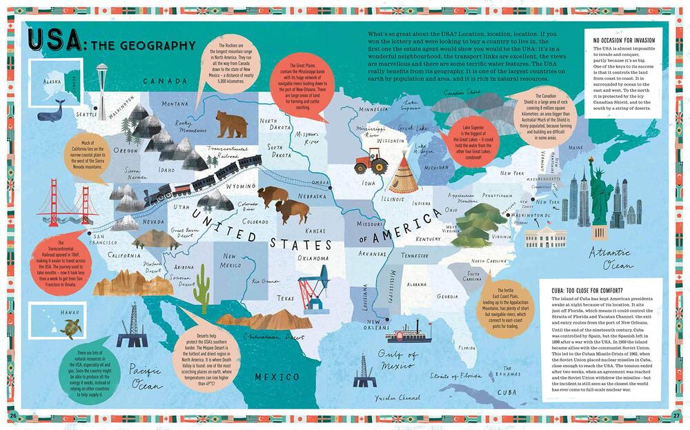 Một chương lịch sử của Hợp chủng quốc Hoa Kỳ được thiết lập xoay quanh ý tưởng là bất kỳ dân tộc nào cố gắng đạt được dải đất như tại nước Mỹ sẽ được dành riêng đặc quyền siêu cường, nhưng điều này rất ít được giải thích bằng cách nào việc này thực tế sẽ xảy ra như dự định. Chúng ta nhận thấy gì khi người Mỹ thuộc nền cộng hòa mới thành lập hoàn toàn không đồng ý rằng việc mở rộng liên bang còn non trẻ là khôn ngoan? Những người dân New England phản đối dữ dội Vùng đất mua Louisiana bởi vì vùng này sẽ cản trở mô hình văn hóa xã hội của họ được mở rộng dần dần theo thứ tự, đồng thời cũng nâng cao sức mạnh của các địch thủ chiếm hữu nô lệ ở phía Nam và của những kẻ Scots-Irish "kém văn minh" khai hoang vùng cao Appalachian. Việc mở rộng về phía Tây đã giúp ích rất lớn cho nước Mỹ, nhưng đó cũng gần như đã thật sự phá hủy đất nước này bởi làm dấy lên cuộc Nội chiến, vì có sự hạn chế về ngôn từ được dùng nên Marshall cố gắng tránh nhắc đến. Tại sao Mỹ không sát nhập với Canada - đất nước chia sẻ với Mỹ nguyên một đường biên giới dài và dễ thay đổi về mặt địa lý - thật không thể giải thích được. Có một câu chuyện thể hiện sâu sắc địa chính trị được kể ở Bắc Mỹ nhưng giờ thì không thể tìm thấy câu chuyện đó nữa.