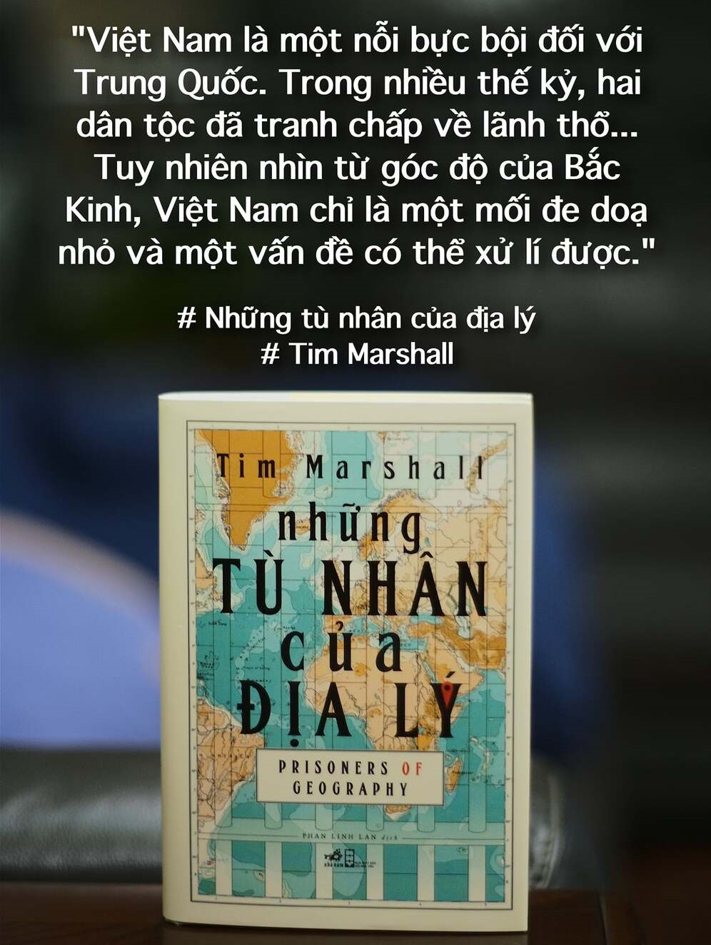 Cuốn sách này của Tim Marshall, thực sự là đỉnh của đỉnh trong dòng sách geopolitics địa-chính-trị, mà trong đó, theo tác giả rất quyền uy trong mảng khảo cứu này, đa phần nhân loại vẫn là các tù nhân bị địa lý giam cầm, o bế, bị các ranh giới của địa lý quy định hành vi, và chính sách chính trị...