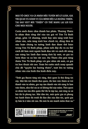Cuốn sách được chia thành hai phần. Thượng Thiên là nhận thức tổng thể của tác giả về Tôn Tử Binh pháp, gồm 13 chương, trình bày nền tảng triết học nhân văn, nền tảng triết học chính trị, đồng thời đi sâu luận chứng tư tưởng lãnh đạo được thể hiện trong Tôn Tử Binh pháp, phân tích đầy đủ và cụ thể cách để làm một người lãnh đạo tốt và cách để nâng cao năng lực lãnh đạo trong thời kỳ mới, có giá trị hiện thực và xã hội rất cao. Hạ Thiên chú giải từng thiên Tôn Tử Binh pháp với góc nhìn rất mới, có giá trị học thuật rất cao. Toàn bộ cuốn sách xoay quanh chủ đề “quyền lực hướng thiện”, toát lên tư tưởng nhân văn của binh thư kinh điển này.