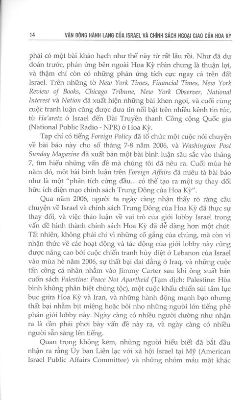 Cuốn sách "Vận động hành lang của Israel và chính sách ngoại giao của Hoa Kỳ" (The Israel lobby and U.S. foreign policy) được dịch từ nguyên bản tiếng Anh của các tác giả John J. Mearsheimer và Stephen M. Walt, xuất bản lần đầu tiên ở Hoa Kỳ năm 2007.